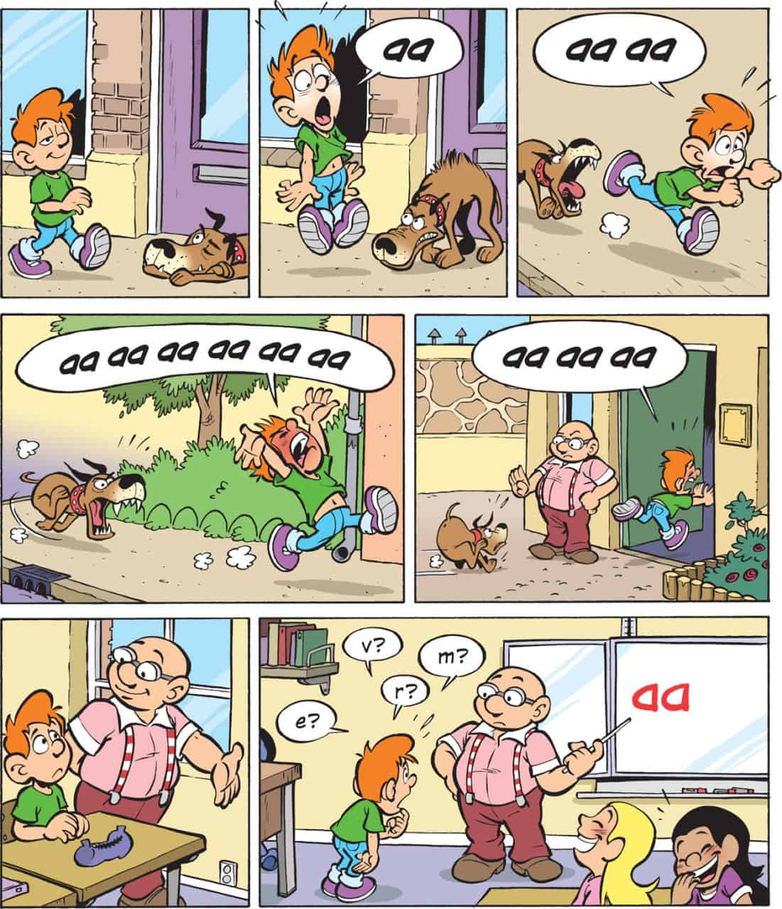 Onze stripboeken bestaan uit veel verhaaltjes van één of twee pagina’s. Daardoor blijft de leesinspanning beperkt tot korte leessprintjes, wat helpt om de aandacht erbij te houden. Aan het eind volgt de beloning in de vorm van een verrassende en leuke ontknoping, met tussendoor nog veel grapjes. En dat smaakt naar méér! Zo voelt oefenen met lezen als een extra koekje uit de trommel mogen pakken.